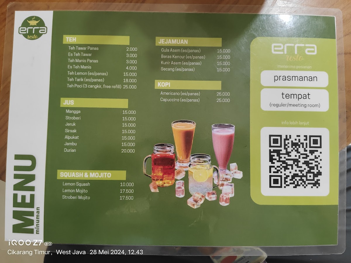 Introducing ERRA RESTO, a culinary gem nestled in Cikarang Timur, Bekasi Regency. Known for its vibrant atmosphere and delectable offerings, this restaurant shines with an array of mouthwatering dishes that cater to both comfort and taste.